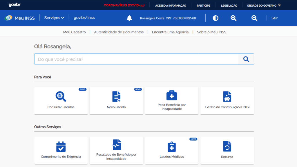 Nele você encontra os principais serviços previdenciários, pode fazer a solicitação, agendamento, acompanhar processos e muito mais.