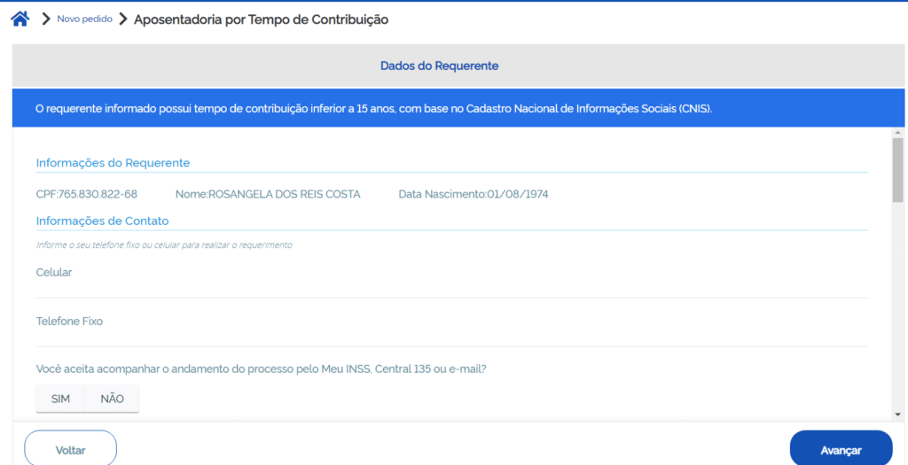 - Dependendo da sua situação, poderá aparecer “caso não possua o tempo de contribuição integral, você concorda com a aposentadoria proporcional?”