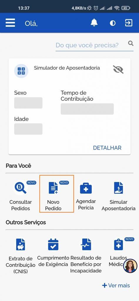 - após isso, clique em “Novo Pedido” e digite “renovar declaração de cárcere” no campo de pesquisa de benefícios;