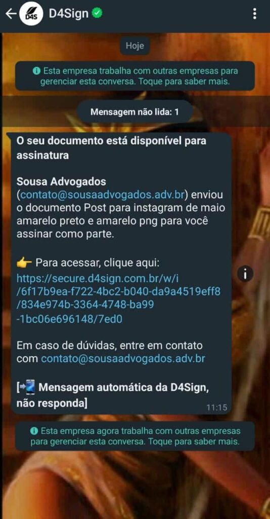 - Você receberá um link no whatsapp com os documentos disponíveis para assinatura;