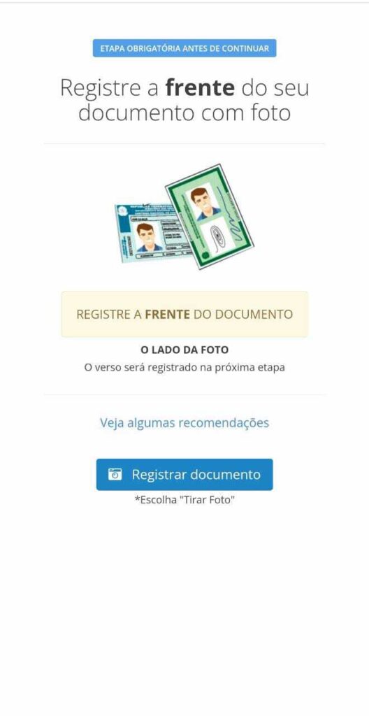 - Ao abrir o link, você vai enviar uma foto de frente e verso do seu documento com foto;